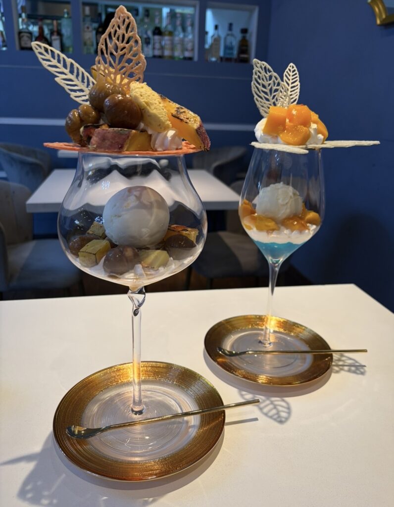 サツマイモとマロンペーストにバニラアイスがほっこり秋の味わいです