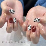 Name アニマルネイル Data カラーレッド/ゴールド/ホワイト アート手書きアート/マグネット Point 秋にやりたいアニマル柄と 赤のデザイン♪ マグネットジェルでキラキラも忘れずに☆ 担当スタイリスト