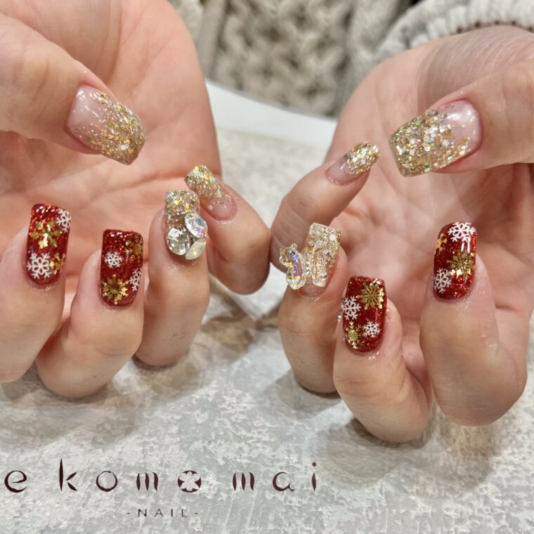 Name キラキラネイル Data カラーゴールド/レッド アートグリッター/パーツ Point ゴールドとレッドのキラキラグリッターが 華やかなキラキラデザイン 担当スタイリスト JNA認定講師 代表 宗像 かつら お客様の美しさを引き出すお手伝いをさせていただきたく 一人一人に合った、カウンセリングを大切にしています。 「e komo mai」では、ラ...