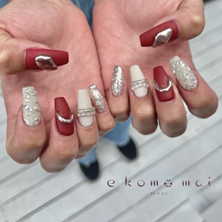 Name リングネイル/アクセサリーネイル Data カラーレッド/シルバー/グレー ミラー/リング Point 存在感のあるリングネイル ☆ ロングのお爪とも相性抜群です☆ 担当スタイリスト JNA認定講師 代表 宗像 かつら お客様の美しさを引き出すお手伝いをさせていただきたく 一人一人に合った、カウンセリングを大切にしています。 「e komo mai」では、ラ...