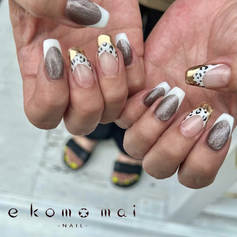 Name レオパードフレンチネイル Data カラーホワイト/ゴールド/ブラウン アートフレンチ/レオパード Point レオパード柄が大人っぽいデザイン☆ ミラーとマグネットでゴージャスなお手元に 担当スタイリスト JNA認定講師 代表 宗像 かつら お客様の美しさを引き出すお手伝いをさせていただきたく 一人一人に合った、カウンセリングを大切にしています。 「e komo mai」では、ラ...