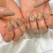 Name 干支ネイル Data カラーブラウン/ゴールド アートワンカラー/マット/干支/パーツ 担当スタイリスト JNA認定講師 代表 宗像 かつら お客様の美しさを引き出すお手伝いをさせていただきたく 一人一人に合った、カウンセリングを大切にしています。 「e komo mai」では、ラ...